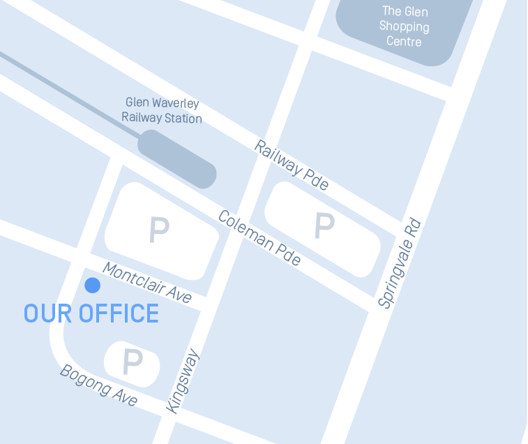 Based in Glen Waverley in the eastern suburbs of Melbourne, our offices are easy to access, with free parking directly across the street.